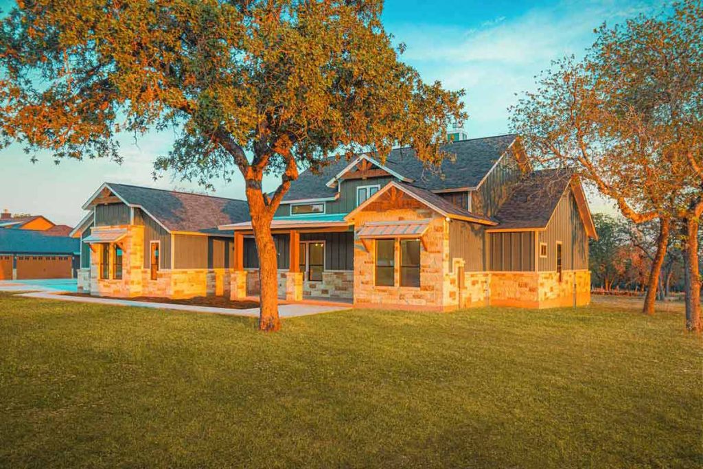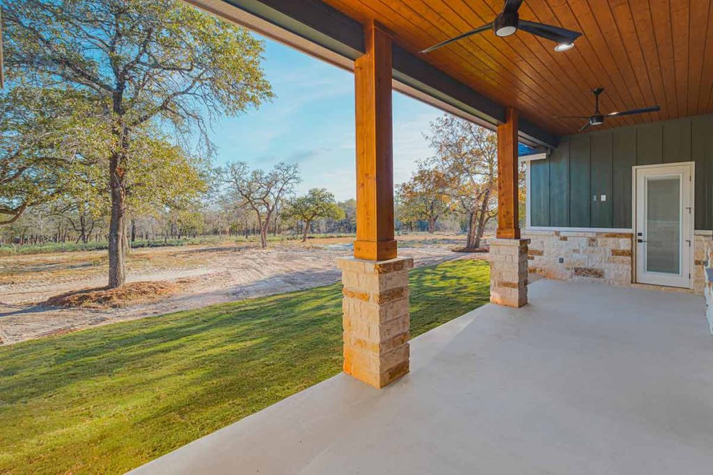 This property exudes Elegant Farmhouse Charm: Newly Crafted with 3-car garage, Beautifully Situated on 1-Acre of Wooded Countryside! The attractive exterior beckons you to come experience Delightful Finishes throughout, offering spacious open living that incorporates both Dramatic Accents & Comfortable Features. Expansive ceilings welcome you in the Entry & Dining, with a graceful vaulted Living Room ceiling & solid plank mesquite mantel at the fireplace … chic wood-tile flooring flows seamless through these open spaces. The “heart of the home” Gourmet Kitchen is Incredibly Stylish: Gleaming Quartzite Counters, Classic Custom Cabinetry w/Ceiling Height Glass Uppers, Generous Island w/smart pop-up charging stations, KitchenAid Stainless Steel Appliances, Champagne Bronze hardware, black&gold Faucet + Pot Filler, and a Fabulous Pantry w/extra cabinetry! The thoughtful layout affords separated bedroom areas for convenience & privacy: Master Retreat affords a Luxury Bath with sparkling tile, free-standing tub & dual-head shower; 2nd & 3rd bedrooms access the Hall Bath w/tiled walk-in shower; 4th bedroom is separated with its own bath that also opens to the back patio (ideal for outdoor activities & future pool). Exceptional Laundry Room w/Abundant Cabinetry & sink; and the Mud Bench at hall by garage adds Beauty & Function. Enjoy the Pleasant Countryside from the Covered Back Patio, and appreciate being under 10 minutes from the amenities of La Vernia, with big city San Antonio within 35 minutes. 1-2-10 year bonded builder warranty. Hondo Ridge is a wonderful country neighborhood with the advantage of Fiber Internet. Come enjoy!