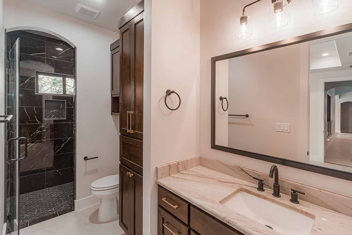 Newly Crafted with Exceptional Finishes! Situated on 1.13 Acres of Wooded Countryside in esteemed Eden Crossing, discover this Stunning New Home with 3-Car Garage, showcasing quality features & rustic elegance with modern flair. The Custom Iron Entry Door welcomes you! Expansive Great Room w/vaulted ceiling & center wood beam, stately stone fireplace flanked by rich wood bookshelves+cabinetry, w/Artisan-Hewn Pecan Mantel. Delightful Island Kitchen: Plentiful dual-tone custom cabinetry (including ceiling-height display cabinets w/glass doors), adorned by champagne bronze hardware, state-of-the-art KitchenAid appliances, specialty pot filler & professional-style sink faucet. Gorgeous Quartzite Counters Throughout! The thoughtful layout is designed to accommodate your lifestyle … the master is located on one side of the home; an additional guest suite or 2nd master is privately situated at the back of the home; the remaining two bedrooms & 3rd full bath are down a separate hall. Master Retreat offers a luxury bath with free-standing tub & generous walk-in shower w/rain head, plus dual closets with one connecting directly to the laundry room. Quality & Style continue throughout the home: Designer Lighting + Fashionable Tile Accents + Ceiling Treatments of cedar beams, step-ups & crown moulding. Front Bedroom would be ideal Study/Office, with vaulted ceiling, wood-tile floor, and abundant natural light! Enjoy the countryside from the generous back patio, while appreciating the convenience of being minutes from the amenities of La Vernia and within 35 minutes to central San Antonio. The Eden Crossing community includes a wonderful neighborhood park with pond & paved walking trails. Fiber Optic Internet available! 1-2-10 year Bonded Warranty.