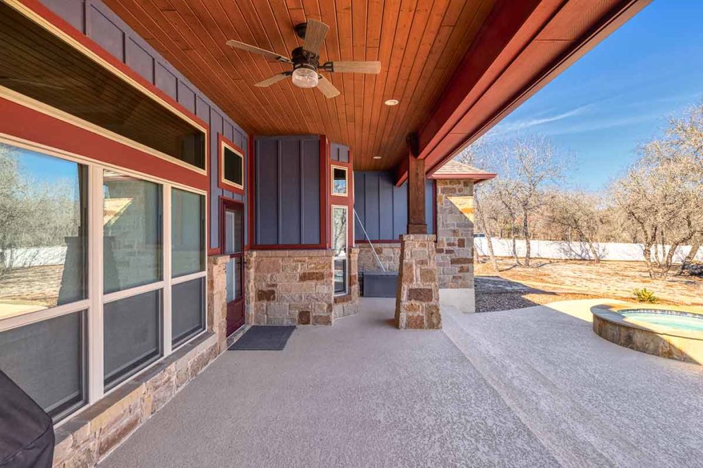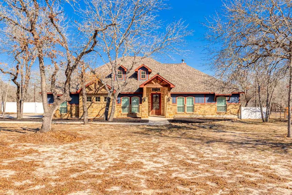 Stunning Home + Sparkling Pool & Hot Tub + 2 Acres of Wooded Countryside! Crafted in 2019 by esteemed local builder MG Legacy Custom Homes, this 1-owner home features Rustic Elegance with a touch of Mountain Lodge flair. Open floor plan with high-end finish out; Retreat to your grand living room w/rock fireplace, locally hewn mesquite mantel, overlooking gorgeous treed backyard oasis, with generous patio, gleaming pool & hot tub! Double doors open to the Dedicated Study, with beautiful wood-tile flooring in both the study & Formal Dining. Rich natural Alder cabinetry & high-level granite! Throughout the home, you’ll appreciate solid wood Knotty Alder interior doors. All ceramic tile floors (no Carpet)! Lovely plantation shutters grace many windows. Fully fenced front yard with pipe fencing, including electric gate at driveway, and a large portion of the back yard is fenced with durable vinyl privacy fencing. Convenient backyard storage shed, water softener, and gutters around the home! Country Living, minutes to city conveniences. Community park!